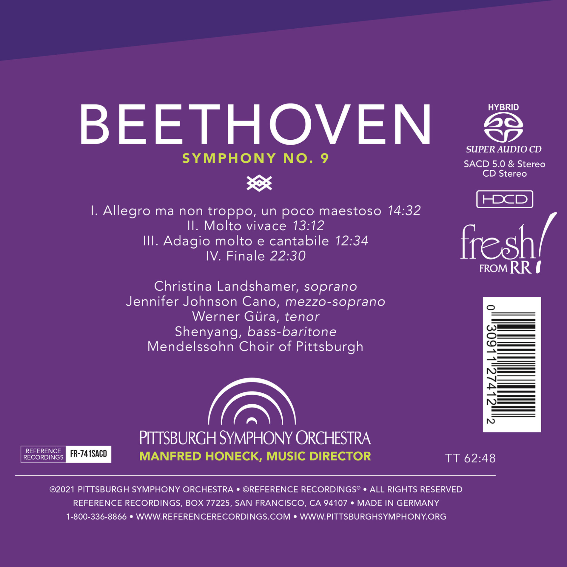 Reference Recordings® proudly presents Beethoven's Symphony No. 9 in a new and definitive interpretation from Manfred Honeck and the Pittsburgh Symphony Orchestra. This new release is part of the Orchestra's 125th Anniversary joy!