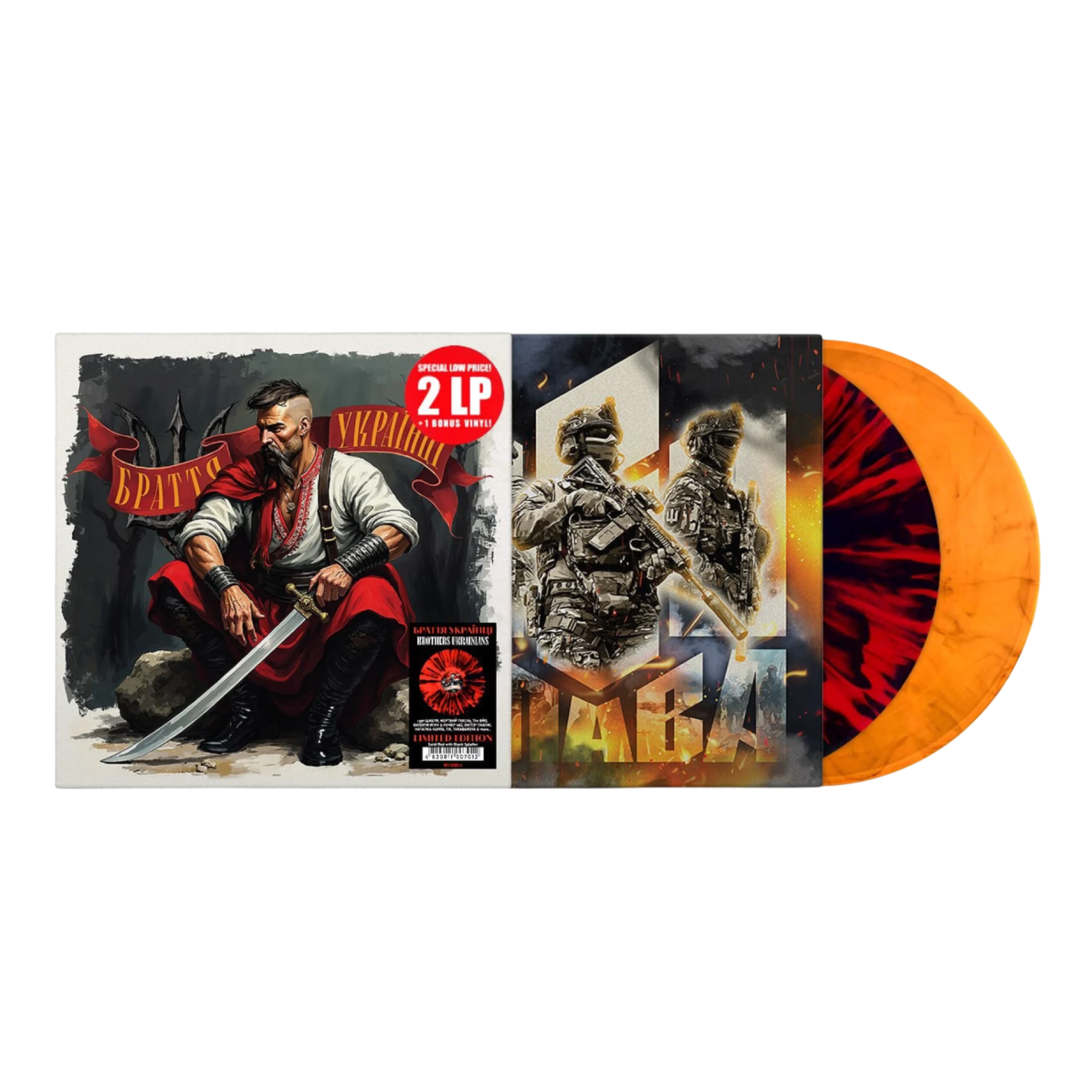 ‘Brothers Ukrainians’ is a collection of works by famous Ukrainian artists. The main theme and mood of the album is the unity and brotherhood of Ukrainians. Solidarity that will allow everyone to get through difficult times together and achieve a common victory. The vinyl itself is made in red and black (Solid Red with Black Splatter).