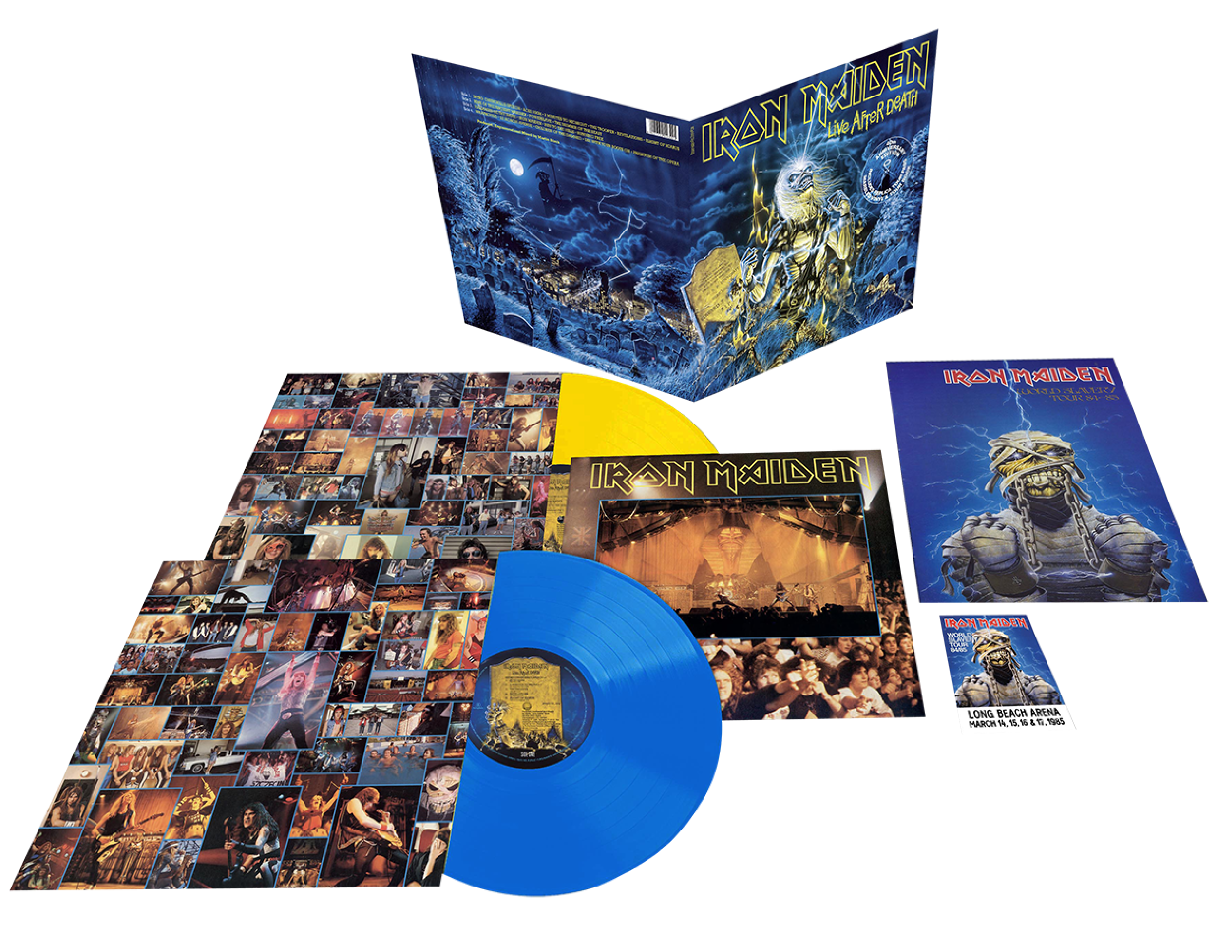 Additionally the vinyl features a replica tour pass and a glossy 12 page booklet, which contains the original eight-page booklet alongside an exclusive and brand new essay entitled Rime And Punishment: Celebrating 40 Years Of Live After Death, where Iron Maiden Fan Club editor Alexander Milas interviews Steve Harris, Nicko McBrain, Rod Smallwood and acclaimed illustrator Derek Riggs about the legendary album.