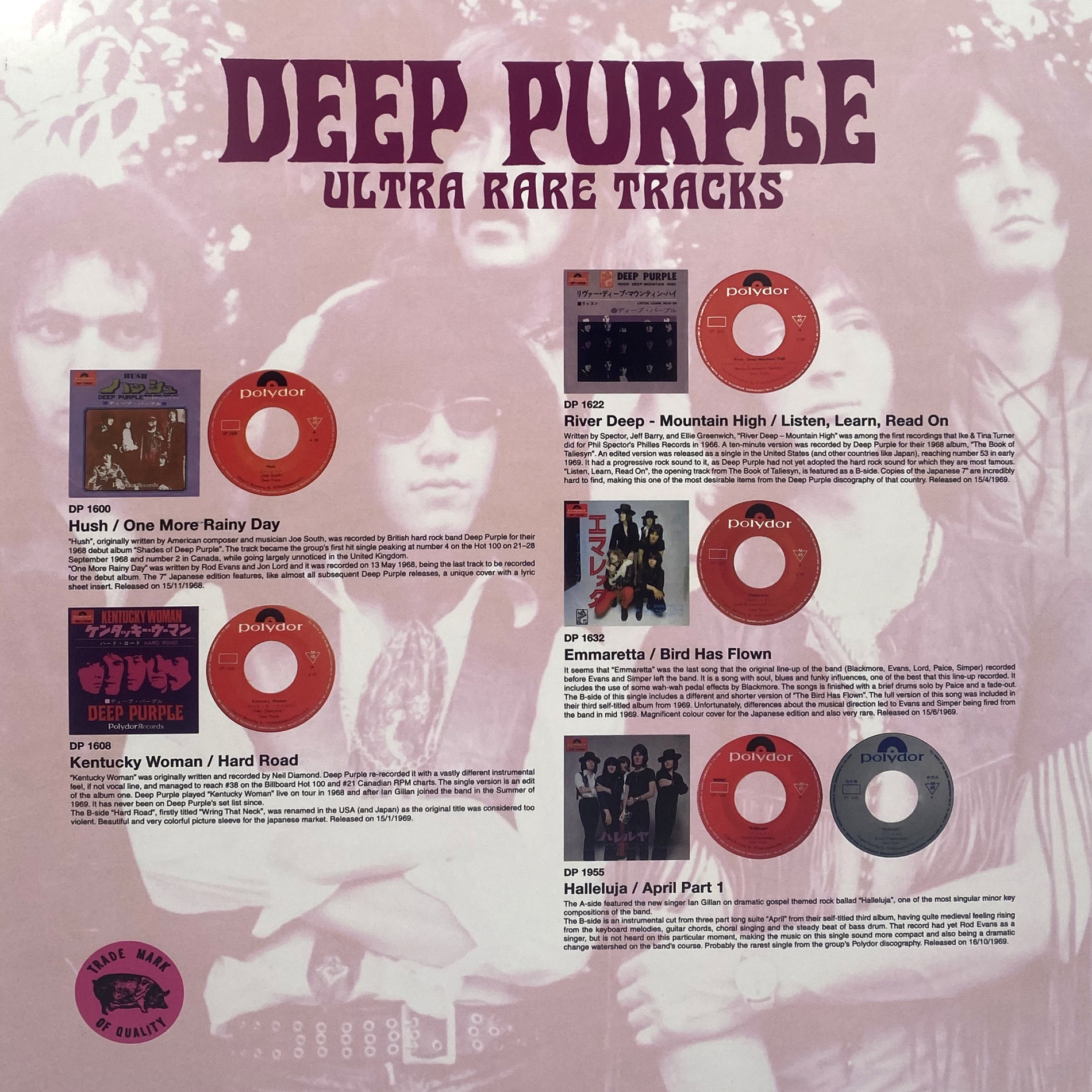 Deep Purple звучат на пике формы в этой подборке редчайших композиций, собранных с оригинальных японских моно-синглов, эксклюзивных ремиксов и промо-записей на 7-дюймовых винилах — настоящий раритет для ценителей